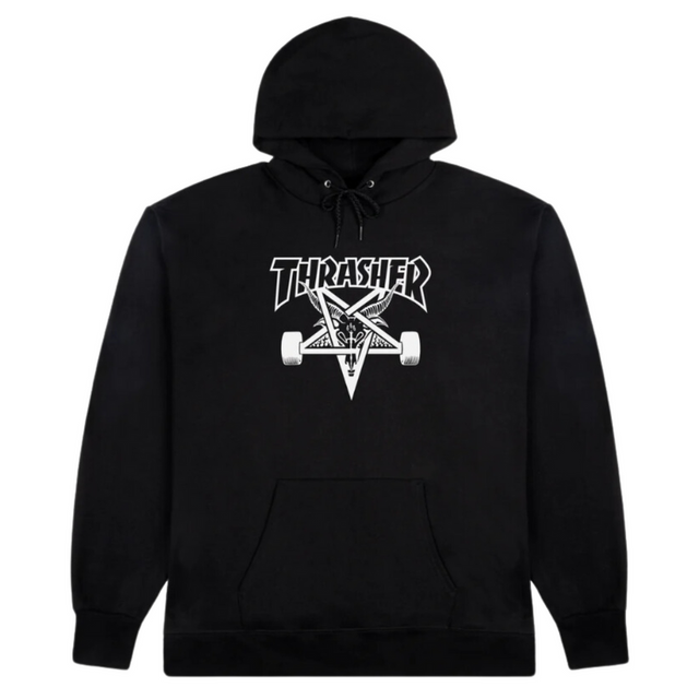Mroczny symbol skate'u, który zna każdy prawdziwy rider. Thrasher Skate Goat Hoody to bluza z kapturem z jedną z najbardziej kultowych grafik magazynu – kozłem jeżdżącym na desce, otoczonym okultystycznym klimatem i niepokorną energią. Jeśli wiesz, czym jest prawdziwa niezależność – to bluza dla Ciebie.